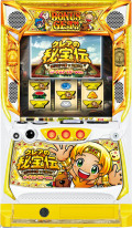ノーマル機の人気シリーズ『クレアの秘宝伝』の最新作『クレアの秘宝伝 ~はじまりの扉と太陽の石~ ボーナストリガーver.』が大都技研より登場した。本機は同社初のBT機。BB当選時は必ずBTが発動し、約356枚獲得できる。ボーナス合算確率は設定1でも168分の1と高く、これまでと変わらない遊びやすさを維持。最大出玉率も114.0%(設定6・完全打ち時)と、ノーマル機市場最高峰の数値を実現しているぞ。通常時は主にチャンス目出現でボーナス同時当選のチャンス。「高確率」に突入すればチャンスとなり、高確率中にチャンス目が出現した場合はボーナス濃厚だ。他の小役でもチャンスはあり、「ベル → スイカ → チェリー → チャンス目(期待度20%以上) → 確定チェリー(ボーナス濃厚) → ピラミッド図柄揃い(BB濃厚)」の順に期待大となる。おなじみの演出カスタムは、デフォルトの「クレアの秘宝伝」以外にも、「番長」や「吉宗」 「初代秘宝伝」を選択可能。選択時は通常時の演出が変化するだけでなく、ボーナス中の映像も変化する。ボーナスはBIG BONUS(約356枚獲得)とREGULAR BONUS(最大107枚獲得)の2種類。どちらも一度だけ14枚役を獲得する枚数調整手順を実践する必要がある(BB中は前半と後半それぞれで要実践)。BB中の映像に関しては、シリーズ最大の90種類を搭載。お宝BB(全69曲)、ストーリーBB(全14話)、カスタムBB(全7種類)と、1日打っただけでは制覇できないほどの圧倒的ボリュームとなっている。